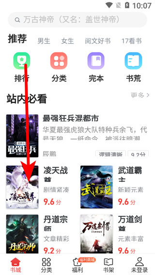 1、在追書神器書城頁面,點(diǎn)擊任意書籍,進(jìn)入書籍詳情頁面。
