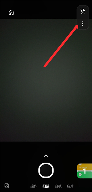 1、打開Office Lens應(yīng)用,點(diǎn)擊右上角的三個(gè)點(diǎn)圖標(biāo),展開功能菜單。