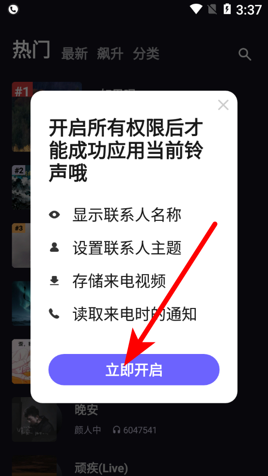 3、在權(quán)限提示彈窗中,點(diǎn)擊立即開啟按鈕,進(jìn)入權(quán)限設(shè)置界面開啟即可。