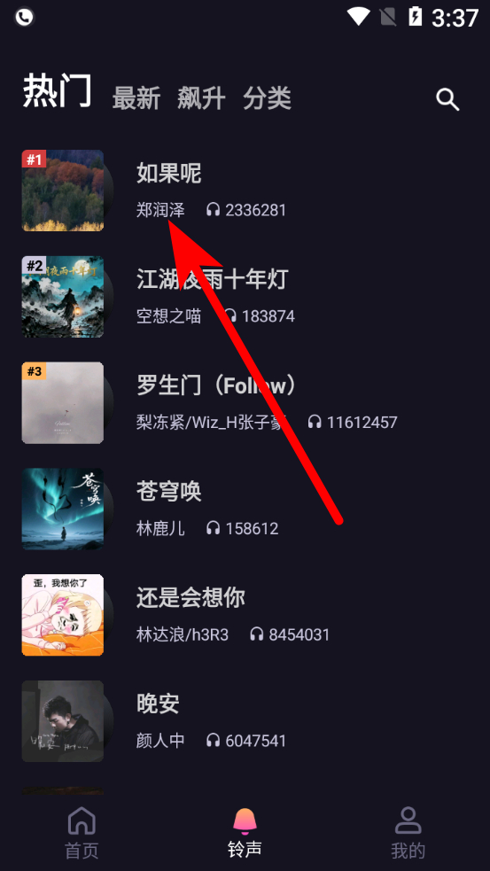 1、在鈴聲頁面,找到并點(diǎn)擊目標(biāo)鈴聲,彈出操作選項(xiàng)。