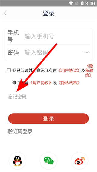 3、在登錄頁面,點擊忘記密碼選項,進入找回密碼頁面。