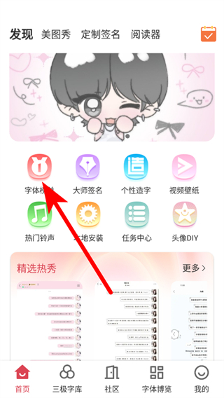 1、在字體美化大師首頁(yè),點(diǎn)擊字體榜單選項(xiàng),進(jìn)入字體榜單界面。