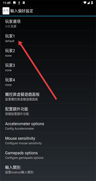 3、點(diǎn)擊“玩家1”,進(jìn)入玩家1設(shè)置頁(yè)面。