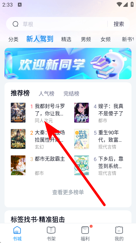 1、在米讀小說書城頁面,點擊想要閱讀書籍的名稱,進(jìn)入書籍閱讀頁面。