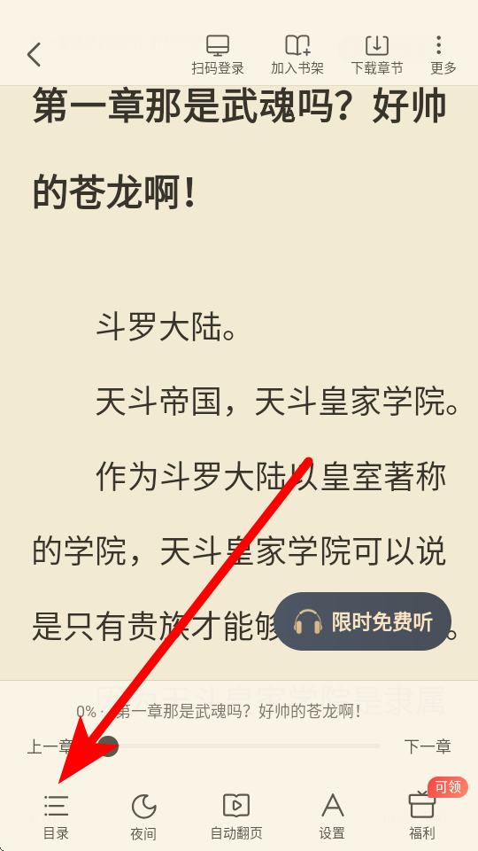 3、點擊后會彈出目錄界面,即可查看該書籍的章節(jié)目錄。