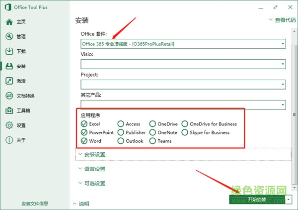 1、下載壓縮包,運(yùn)行office tool plus.exe,安裝office 365專業(yè)增強(qiáng)版,如圖勾選設(shè)置