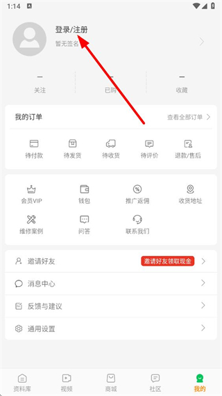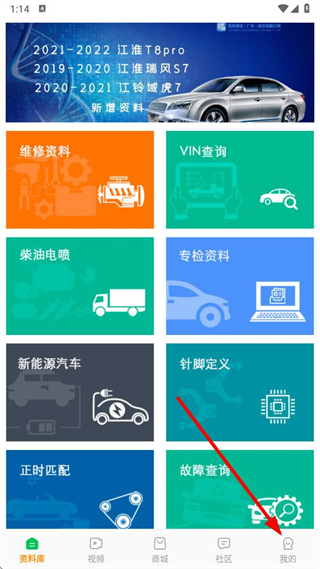 1、在修車神汽app資料庫(kù)頁(yè)面點(diǎn)擊我的選項(xiàng),進(jìn)入個(gè)人頁(yè)面。