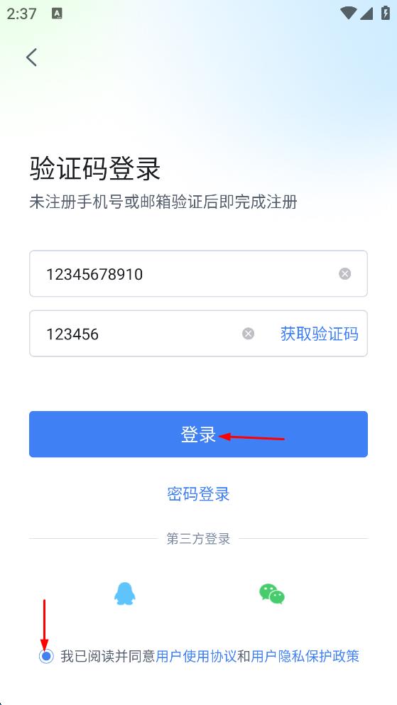 4、同意用戶使用協(xié)議和用戶隱私,點(diǎn)擊藍(lán)色“登錄”按鈕完成登錄。