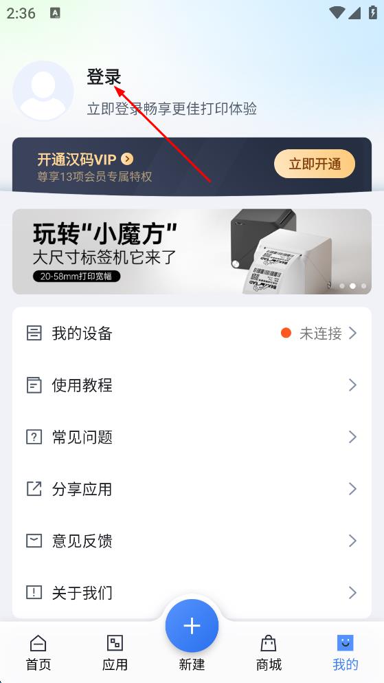 2、在“我的”頁面,點(diǎn)擊上方“登錄”按鈕。