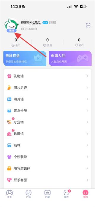 2、在個(gè)人頁(yè)面中,點(diǎn)擊頭像區(qū)域進(jìn)入編輯資料頁(yè)面。