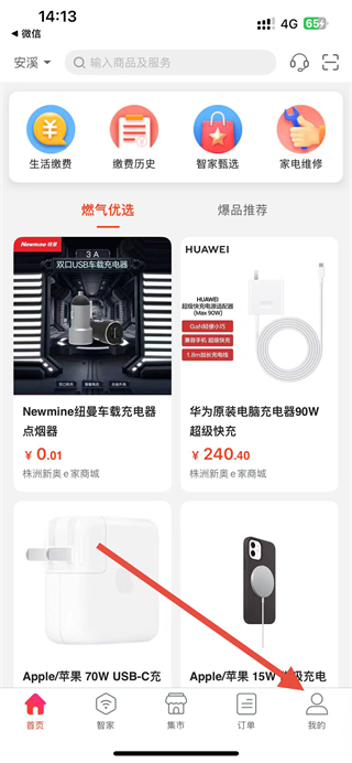 1、在e城e家app首頁點(diǎn)擊我的選項(xiàng),進(jìn)入個人頁面。