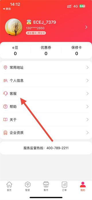 2、在個人頁面點(diǎn)擊客服選項(xiàng),進(jìn)入在線客服頁面。