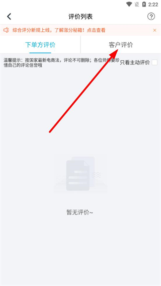 3、進入評價列表頁面后,點擊客戶評價選項。
