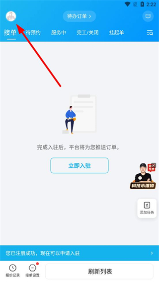 1)點擊網(wǎng)站首頁“師傅入駐”,進入服務商入駐頁面;