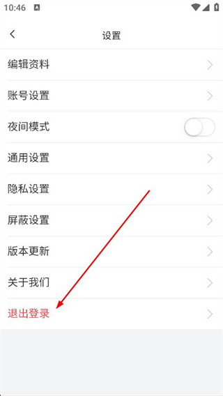 3、進(jìn)入設(shè)置頁面后,點(diǎn)擊下方退出登錄選項(xiàng)。