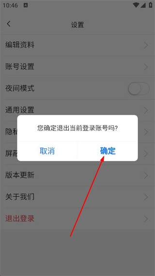4、在彈出的提示框中,點(diǎn)擊確定即可退出登錄。