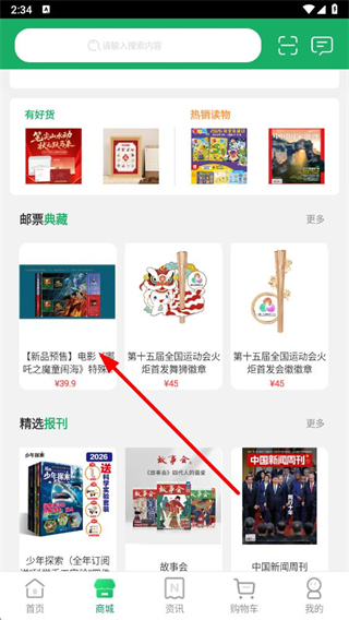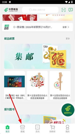 1、打開中國郵政APP,點擊下方商城選項進入商城頁面。
