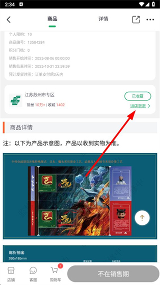 3、進入商品詳情頁面后,下滑頁面,找到并點擊進店逛逛選項。