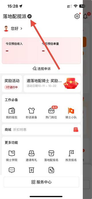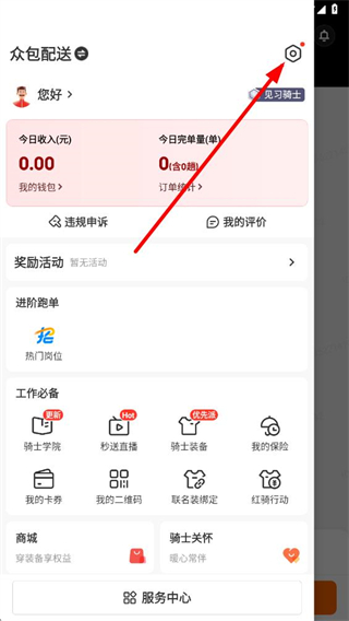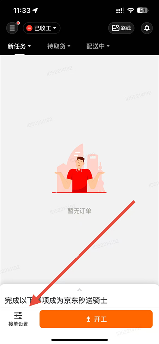 1、在京東秒送騎士app頁面點擊接單設(shè)置選項,進(jìn)入接單設(shè)置頁面。