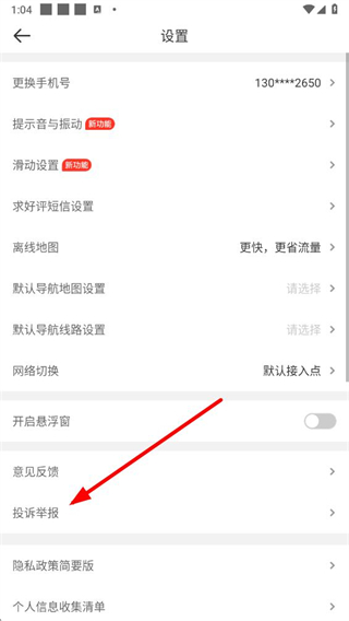 3、在設(shè)置頁面點擊投訴舉報選項,進(jìn)入舉報頁面。