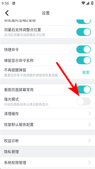 3、在設(shè)置界面中,找到強(qiáng)光模式的開關(guān),點(diǎn)擊開啟完成強(qiáng)光顯示的設(shè)置。