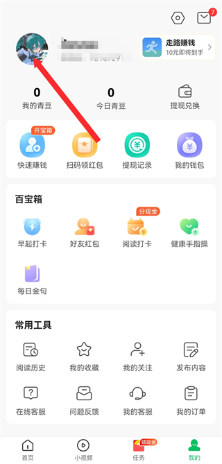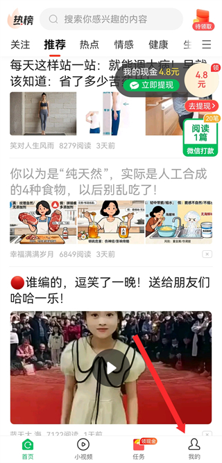 1、打開中青看點APP,點擊右下角我的按鈕,進入個人的頁面。