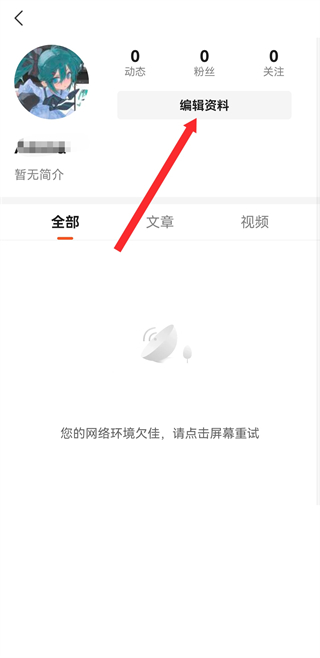 3、在個人的主頁中,點擊編輯資料,進入編輯個人資料頁面。