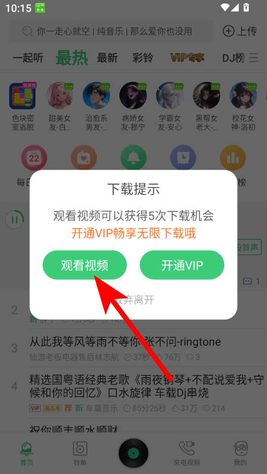 4、完成視頻觀看后,觀察左邊下載進(jìn)度鈴聲即可下載到手機(jī)。
