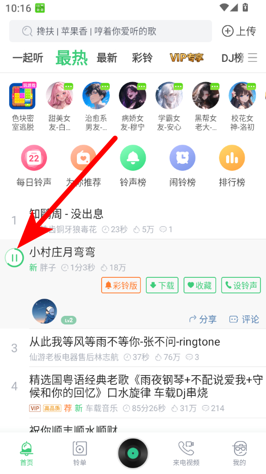 1、在鈴聲多多首頁,點(diǎn)擊要下載的鈴聲,彈出操作選項。