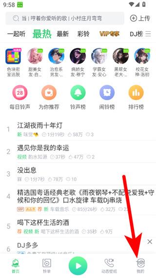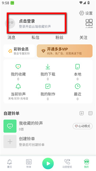 1、在鈴聲多多app首頁,點(diǎn)擊右下角我的選項,進(jìn)入個人界面。