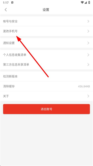 3、在設(shè)置頁面點(diǎn)擊更改手機(jī)號(hào)選項(xiàng),進(jìn)入更改手機(jī)號(hào)頁面。