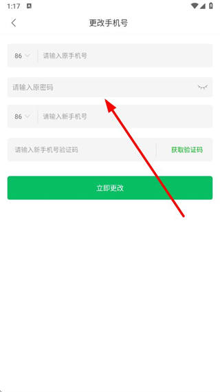 4、在頁面輸入原手機(jī)號(hào)、原密碼、新手機(jī)號(hào)和新手機(jī)號(hào)驗(yàn)證碼,點(diǎn)擊立即更改按鈕,即可完成手機(jī)號(hào)修改操作。