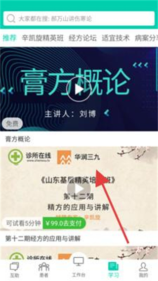 3、注冊(cè)完成后,即可進(jìn)入APP,使用膏方概論等課程及診所在線相關(guān)功能。