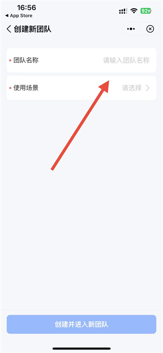 3、在創(chuàng)建團隊頁面輸入團隊名稱,選擇使用場景和常用模塊。