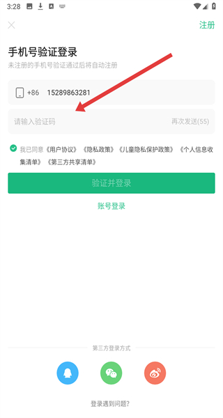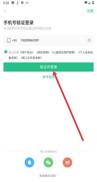3、跳轉至手機號驗證登錄頁面,在填寫好手機號后,可以點擊驗證并登錄按鈕,進行登錄。