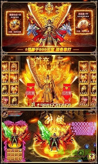 3.登陸即送128888元寶,1000w金幣,滿(mǎn)級(jí)vip,2刀就到80級(jí)!