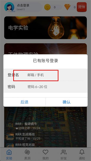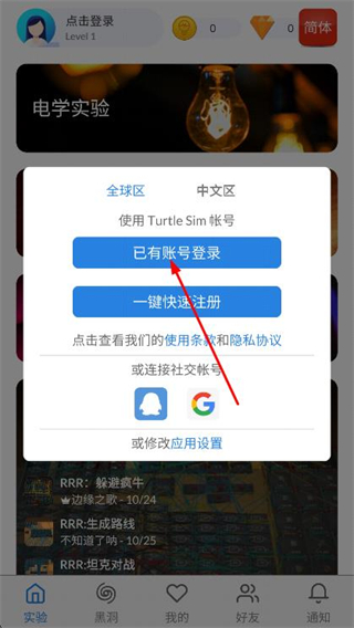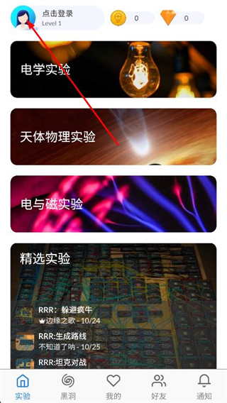1、打開物理實(shí)驗(yàn)室,點(diǎn)擊左上角的點(diǎn)擊登錄頭像。