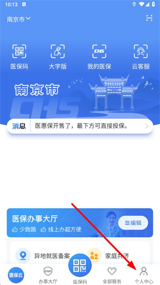 1、在江蘇醫(yī)保云app醫(yī)保云頁面點擊個人中心選項,進(jìn)入登錄頁面。