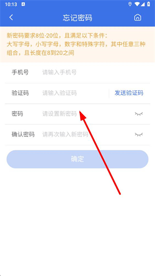 4、在忘記密碼頁面輸入手機(jī)號,輸入驗證碼,設(shè)置密碼,點擊確定按鈕,即可完成密碼重置操作。