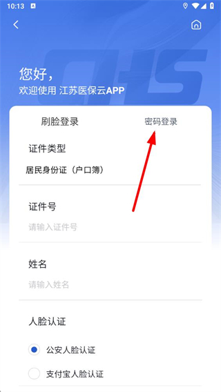 2、在登錄頁面點擊密碼登錄選項,進(jìn)入密碼登錄頁面。
