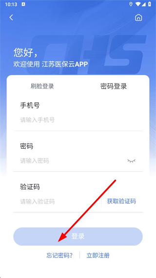 3、在密碼登錄頁面點擊忘記密碼選項,進(jìn)入忘記密碼頁面。