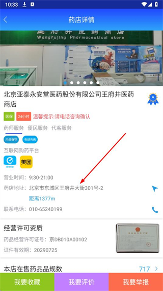 3、在藥店詳情頁面,即可查看該藥店的地址、營(yíng)業(yè)時(shí)間、聯(lián)系電話等信息。