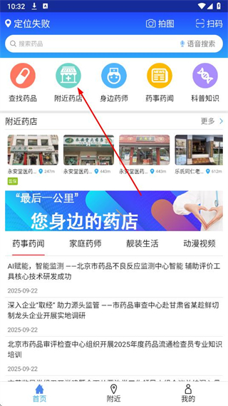 1、打開京藥通APP,在首頁點(diǎn)擊附近藥店。