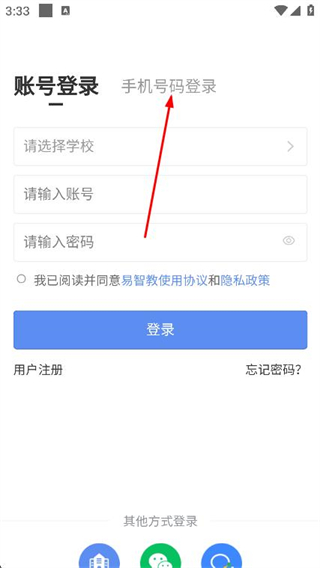 1、打開易智教云課堂app,點擊手機號碼登錄選項。