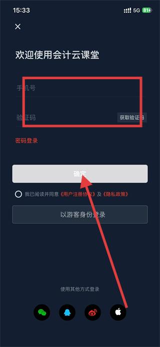 4、輸入手機(jī)號(hào)和驗(yàn)證碼,點(diǎn)擊確定按鈕即可完成登錄。