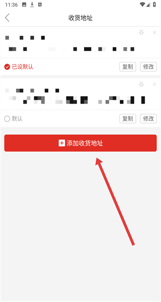 3、在進(jìn)入到收貨地址頁(yè)面中后,可以點(diǎn)擊下方添加收貨地址按鈕,進(jìn)行添加操作。