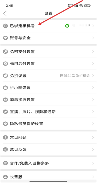 1、在進(jìn)入到設(shè)置頁(yè)面中時(shí),可以點(diǎn)擊已綁定手機(jī)號(hào)選項(xiàng)進(jìn)入設(shè)置。