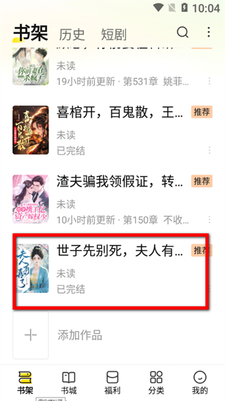 1、在七貓小說書架頁面,點擊想要更換聽書聲音的小說,進入小說閱讀界面。