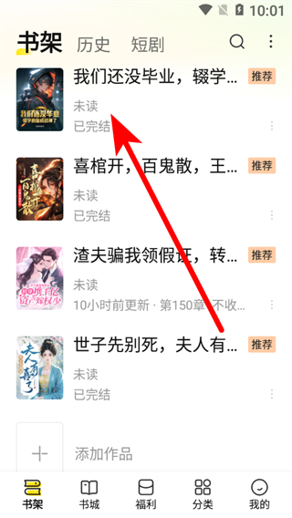 1、在七貓小說書架頁面,點(diǎn)擊想要收聽的小說,進(jìn)入小說詳情頁面。