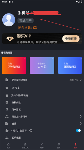 2、進入個人中心的頁面內,點擊用戶手機號的區(qū)域位置。